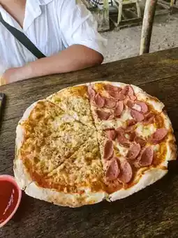 Last location is Trikora beach. According to reviews, this beach boasts of white sand and clear blue water. Both were true but my issue was that the shore was dirty. We didn’t know if it was just that part of the shore since it’s a long stretch. It was still very pretty though. It was the beachfront of the restaurant Pizza Casa Italia where we had our late lunch. This restaurant has very good reviews which convinced me to try when we visit Bintan. We noticed there were more local families eating here and having a get-together than tourists. We loved the pizza, it was so filling even though it’s thin crust and tasted delicious. We enjoyed our lunch especially with the beach as the view.