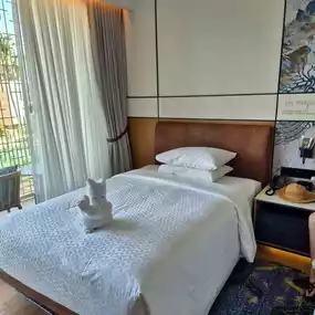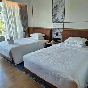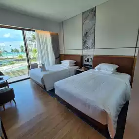 The room was slightly small with no bath tub but everything else was perfect. It was clean and beds were comfortable. There's also a balcony with chairs and a table for you to hang out there and admire the views outside. I really love my stay here, so do check out the new Four Points by Sheraton Bintan Lagoi hotel.