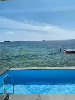 The villa boasts a direct sea view, allowing for uninterrupted vistas of the glistening waters right from the room. Each villa is well-appointed with a private pool and a luxurious bathtub.๐