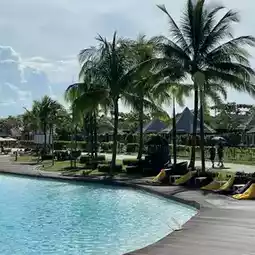 Room is spacious enough for family of up to 4 pax (45sqm). There are 100 rooms and their interior is more or less the same. Hotel is equipped with individual aircon system and en-suite toilet. There are 20 rooms with 🛁 Jacuzzi 🛁 and they are located furthest from the restaurant. Full amenities including slippers, toiletries, towels, ironing board, meeting room, restaurants are all available for use. Open your door in the morning and you find the largest crystal lagoon right in front of you. Dip into the pool from 9am - 6pm daily, and it’s so big you will never find it crowded.