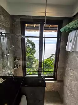 Rainforest sea view villas are built on the hillside, with 84-116 square meters of spacious space perfectly blending nature and luxury. Push the door open, and the four-poster bed faces the vast sea view outside the floor-to-ceiling window. The infinity pool on the private terrace seems to connect with the skyline. The sound of waves and birdsong in the forest interweave into a natural white noise, instantly relieving fatigue. The villa design is dominated by wood and rattan, and the vintage prints hanging on the bedside depict the island's unique white-necked kingfisher and Sumatran flying lizard, showcasing ecological aesthetics in every detail. At night, lie on the lounge chair by the pool and gaze at the starry sky. The lights of the fishing boats and the moonlight dance in the distance, as if you are in a dream.