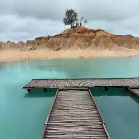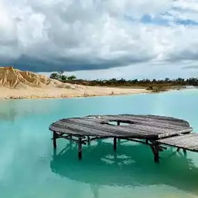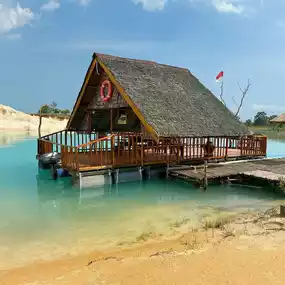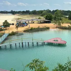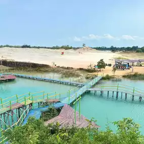 Blue Lake Bintan, located on Bintan Island, Indonesia, is a stunning natural attraction known for its vibrant turquoise waters and serene surroundings. The lake is part of the Bintan Desert area, where visitors can also explore picturesque sand dunes. It's a perfect spot for photography, relaxation, and adventure, with activities like ATV rides and boat tours available.