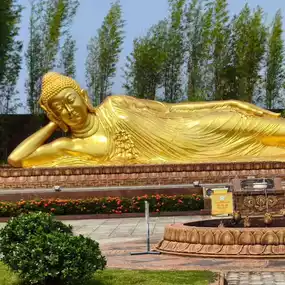 Vihara Dharma Shanti, located in Tanjung Uban, Bintan Island, Indonesia, is a serene Buddhist temple known for its iconic Reclining Buddha statue. The temple's tranquil gardens and beautifully maintained grounds make it a perfect spot for reflection and photography. Visitors of all faiths are welcome to explore its peaceful ambiance and admire the intricate craftsmanship of the statues and carvings.