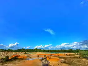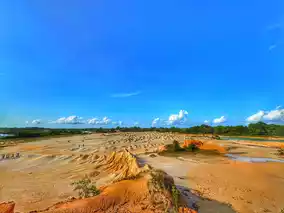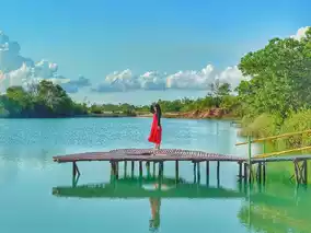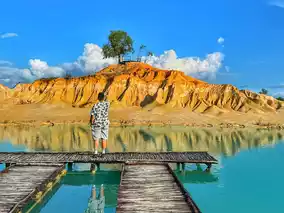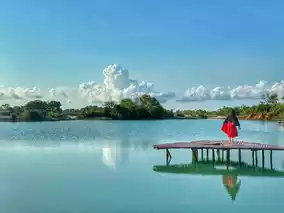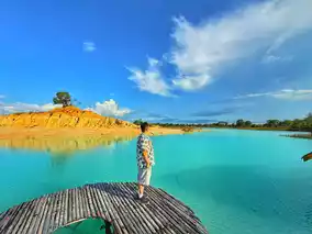 Blue Lake is a hidden gem on Bintan Island. Originally a quarry, over time it transformed into a clear and mysterious blue lake. The water's color changes depending on the angle of sunlight, ranging from emerald green to deep blue, showcasing nature's palette as if it were photoshopped.
