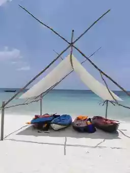 Spend your day swimming, sunbathing, or exploring the calm shoreline 🌞. Try snorkeling, kayaking, or fishing 🎣 for a fun adventure, and don’t miss the chance to taste fresh seafood from small beachside warungs 🐟🍤.