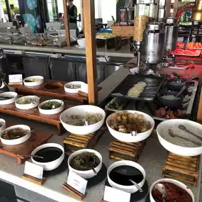 Breakfast - Selection is mediocre. As the cafeteria is open-air area together with the lobby, it is quite disturbing to see flies & birds flying around.