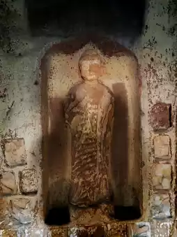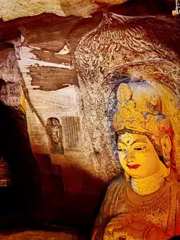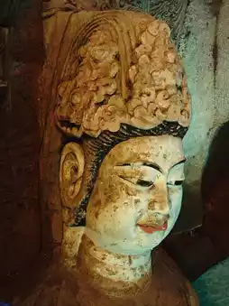 The Big Buddha Cave is the largest cave, housing the largest Buddha statue in Shaanxi Province, which is 20 meters high. The Thousand Buddha Cave is a large central pillar cave with a nearly square plan. The niches inside the cave are arranged in a disorderly manner, and most of the statues are works from the reign of Wu Zetian. The Arhat Cave is slightly smaller in scale and has a special shape. It is an unfinished central pillar cave, and the statue style is similar to that of the Thousand Buddha Cave.