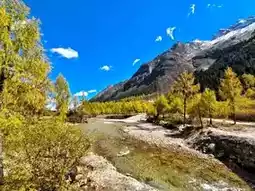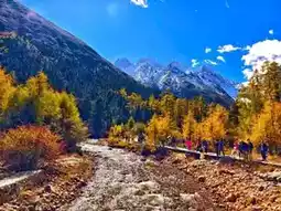 Bipenggou in Lixian city is absolutely stunning. I love it so much. The weather was perfect with clear skies and bright sunshine. I was truly impressed. You can admire the beauty of the valley. Just look at the pictures to see how beautiful it is. There is a Tibetan temple on top of the mountain, and as you continue to climb, you will come across a lake with five different shades. This natural beauty features streams flowing from the snow-capped mountains for thousands of years, causing limestone to settle and form a large basin.