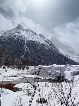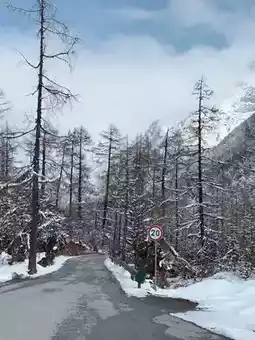 Want to see snow? I sat and searched for information because I had a limited budget. I found this place. Bipenggou can be a one-day trip from Chengdu because the information I found said to be careful about altitude sickness. I thought, okay, if I have altitude sickness, I can go back to the city to rest. I feel relieved first. In the end, I decided to go here. It took almost 4 hours to travel from Chengdu to Bipenggou Park. We rented a car because we thought it was convenient for traveling. The car will drop us off at the park's ticket booth. We booked tickets in advance through Trip.com. Just show the passport and you will get a ticket to take the park's bus up the mountain on a winding road for about 40 minutes. The bus will stop for us to get off here. There will be a restroom, a dining area, and a nurse's office. On the day we went, it was snowing. It was so cool. If anyone wants to go up further, you can buy an electric golf cart ticket for 30 yuan per person. For us, we think the view across from the golf cart ticket booth is beautiful and fun to play in the snow. We don't have altitude sickness. We walk slowly, following the advice we've read. #bipenggou #bipenggounationalpark #chengdu #chengdu