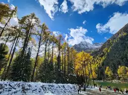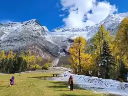 The autumn colors of Bipenggou are breathtaking, with red and yellow leaves against a backdrop of snow-capped mountains. Taken on Monday, October 27, 2025. Although it wasn't a holiday, traffic was terrible. I departed from Chengdu at 7:00 AM and didn't arrive until approximately 12:15 PM. Traffic must be even worse during holidays. Despite the long travel time, the scenery, if the weather is good, is absolutely worth visiting. A day trip to see both autumn colors and snowscapes is simply stunning.