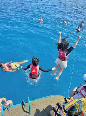 The water depth is a whopping 702m, so you must wear a life jacket when playing in the water!