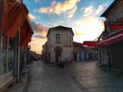 Bitola's iconic pedestrian boulevard, Shirok Sokak (Wide Street), buzzes with cafes, shops, and street performers in fall. Grab a rakija-spiked coffee or hot čaj (tea) at an outdoor spot like one of the old Ottoman-style cafes, and watch locals chat under turning leaves. It's the heart of Bitola's "European" vibe—relaxed, Mediterranean-feeling, and free. Sunset views from Magnolia Square nearby add a golden-hour glow.