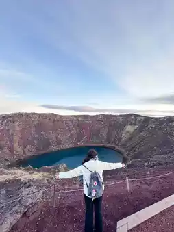 After our bellies were happy, we explored the mesmerizing Kerið Crater. The vibrant blue water against the deep red volcanic rock was absolutely breathtaking. Photos don’t even come close to capturing how magical it felt standing there! 🌋💙