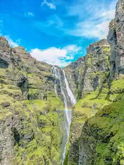 During the summer, the banks of the canyon are covered with lush green moss, and the stream flows gently through the canyon.
