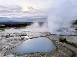 Strokkur Geyser, located in Iceland’s famous geothermal area near the Golden Circle, is one of the most exciting natural wonders to watch. Every few minutes, Strokkur erupts with powerful bursts of boiling water that shoot up 15 to 30 meters into the sky. Before it erupts, you can see the water bubble and swell like a living creature, glowing in a deep blue dome just moments before it explodes. The air smells faintly of sulfur, and steam rises all around, reminding visitors of Iceland’s volcanic heart beneath the ground. Strokkur’s rhythm is unpredictable yet mesmerizing—each eruption feels like nature taking a deep breath and releasing its power. Surrounded by hot springs and colorful mineral pools, the area looks almost otherworldly. Strokkur isn’t just a geyser—it’s a symbol of Iceland’s fiery spirit, showing how beauty and power can exist together in perfect harmony.