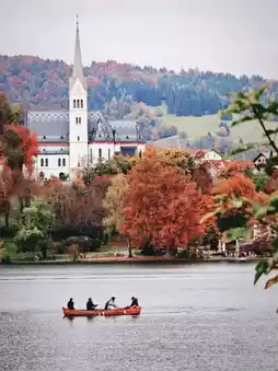 Bled Island is a small, tear-shaped island in the middle of Lake Bled, Slovenia. It is home to the Church of the Assumption of Mary, accessible by a traditional wooden boat called a "Pletna", and features a staircase with 99 steps leading to the church. Visitors can also ring the "wishing bell" in the church tower, which is a local tradition at the place there.