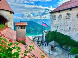 • Climb up to Bled Castle, perched high on a cliff, for panoramic views over the lake and surrounding mountains. Inside, you’ll find a museum, wine cellar, and café. 🏰