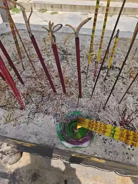 There is only a winding path up the mountain, and devotees hold incense sticks and proceed devoutly. At the foot of the mountain, there are vendors selling incense. The shopkeepers are kind and not only give away lighters but also carefully add oil to the incense to help ignite it. Of course, you can also bring your own incense for a more personalized blessing experience. Inside Yueshan Temple, it is peaceful and serene, allowing one's mind to settle.