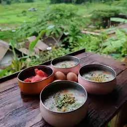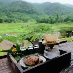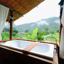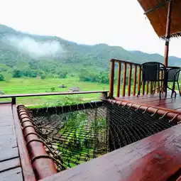 “Full of happiness at Bo Kluea” is located next to the Mang River. There are bicycles for us to ride around the salt pond. In the morning, you can also see the fog from your room. Breakfast is served in a lunchbox in front of your room, very suitable.