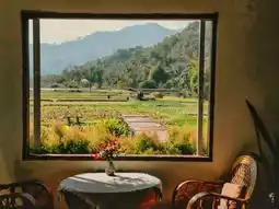 Surrounded by rice fields, there are bicycles to ride
