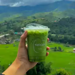 It is a cafe surrounded by mountains and has green rice fields below. During the rainy season, you can see fresh green rice fields like this. It goes well with the green of the mountains and fog. It feels like you are abroad.
