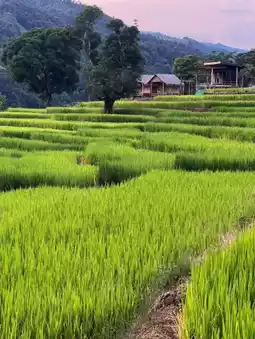Experience the simplicity of a lush rice field 🌿 surrounded by mountains and mist. The air is refreshingly cool all day long, perfect for a relaxing, slow-paced life. 🍃
