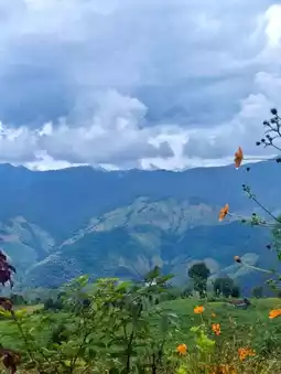 Decorated in a wooden style, the accommodation offers both small houses and a panoramic balcony, perfect for capturing stunning photos from every angle. 📸 The view from the homestay overlooks the rolling mountain ranges and small villages below, creating a truly heartwarming and memorable experience. 💚