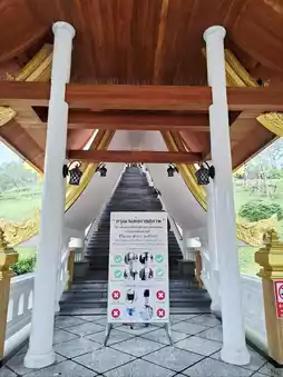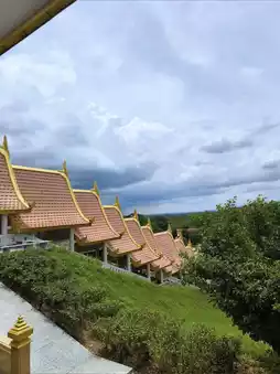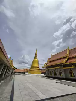• Phra Borommathat Bunyawat, a large golden chedi enshrining the Buddha's relics, is located on a hillside. A short flight of stairs is required to enjoy the panoramic views of the surrounding green mountains. The chedi serves as a viewpoint and a key feature of the temple.