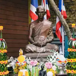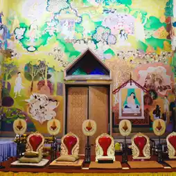 🌱🙏💐It is the first Thai temple in India. The ordination hall is a replica of Wat Benchamabophit Dusitwanaram Ratchaworawihan in Bangkok, which is considered one of the best architectures of the Rattanakosin period. Inside, there is the principal Buddha image, Phra Buddha Chinnarat, which was given the name "Phra Phuttha Thammasorn Chompu Thipaniwat Sukhothai", meaning "The Lord Buddha, the greatest in Dharma, returned to the Indian subcontinent to be happy". There is a painting of the Jataka tale of the Mahajanaka on the walls of the ordination hall.