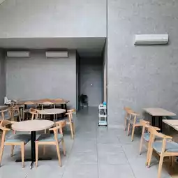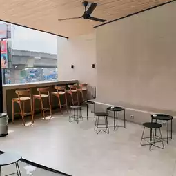 Consisting of two indoor floors with a minimalist industrial concept, with seating that is perfect for those who work from cafes. Additionally, there is also a semi-outdoor area with a direct view of the main road, which is great for relaxing in the afternoon.
