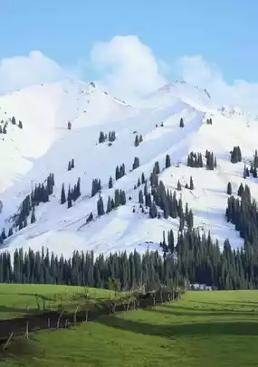 The majestic Tianshan Mountains stand tall, with their snowy peaks piercing the clouds, like the abode of deities, guarding the magnificence and mystery of this land. The vast grasslands are like a green giant carpet, undulating and dancing in the breeze, with spirited horses galloping across, stirring up ripples of vitality.