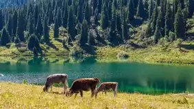 Sailimu Lake is like a dazzling sapphire, quietly set among the mountains, with its azure waters so clear, reflecting the sky and clouds, breathtakingly beautiful. There is also the mysterious desert, with sand dunes undulating like waves, the setting sun's afterglow dyeing it a golden yellow, powerful and stunning.