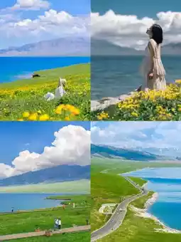 4. Sailimu Lake: It is known as "the last tear of the Atlantic Ocean". It is the last place visited by the warm and humid air currents from the Atlantic Ocean in Xinjiang. The lake water is clear and blue, which contrasts beautifully with the snow-capped mountains in the distance.