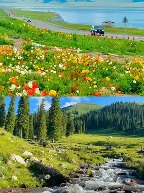 In May, the ice and snow at Sayram Lake begin to melt, the lake water is blue, the lakeside is gradually turning green, and the mountain flowers are in full bloom. At this time, Sayram Lake is like a fairyland, attracting countless tourists to visit.