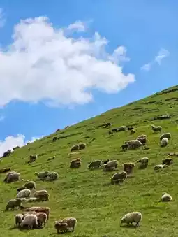 On the way, we encountered flocks of sheep—plump and adorable, making me want to pet them. The sheep grazing on distant hillsides were also very soothing ☺️.