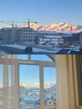 Floor-to-ceiling windows for unobstructed views of Sayram Lake + snow mountains, exclusive sunset/night scenery