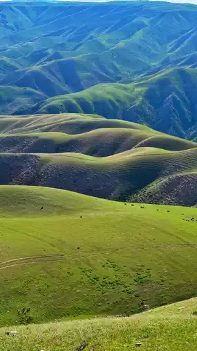 ✔ Kalajun Human Grassland: Wave-like grasslands + canyons, as beautiful as an oil painting under the sunset