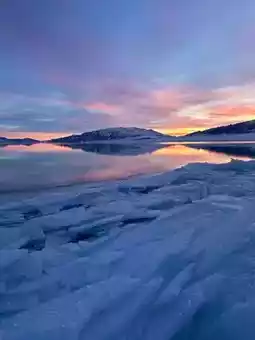 Its deep blue waters reflect the sky and surrounding snow-capped mountains, creating mirror-like views that shift with the seasons.