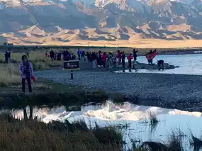 Waking up early that morning, the view outside the bus window was still a deep, slumbering blue. The bus drove across an endless wilderness, with only distant wind turbines faintly conversing with the dawn. As the sun slowly rose, a fiery red streak pierced through the corner of a passing truck, as if someone had secretly ignited the horizon. The air was layered with light and dust, and even my heartbeat seemed to slow down unconsciously. This was the first surprise Sayram Lake gave me—it was understated, yet profoundly moving. As the bus approached the lakeside, the golden grasslands and the blue-and-white contours of snow-capped mountains gradually became clearer, revealing a poetic and picturesque highland landscape. After getting off the bus, I walked to the lakeshore. On one side, the lake reflected the pure blue of the sky and distant mountains; on the other, people were taking photos and laughing in the morning sunlight. The contrast was surprisingly harmonious, as if nature and humanity had reached a mutual understanding. The lake water was icy and crystal clear, occasionally rippling gently, and I could see the white snow resting quietly atop the mountains on the opposite shore. Small puddles scattered across the grass mirrored the grandeur of the Tianshan Mountains and reflected my serene state of mind at that moment. Time seemed to freeze here. With a single turn, the sunset and dawn, the wilderness and snow-capped peaks, the wind turbines and trucks—all felt like a painting etched into memory, stroke by stroke. This is not a bustling tourist spot but a place that teaches you to slow down and learn to gaze. Sayram Lake reaffirmed for me that true magnificence needs no words; simply standing still is already profoundly moving.