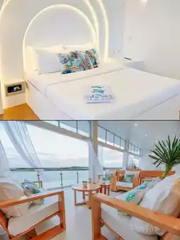 The villa is uniquely designed, with a tropical look that blends perfectly with the surrounding natural environment. The interior is spacious and comfortable, with cozy and elegant rooms and soft and comfortable bedding that will make you sleep like a baby. The living room is a great place to relax and unwind, and it's a great place to sit with friends and chat and enjoy the sea view. 🛋