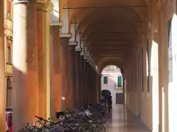 The building in this photo is the old campus of the University of Bologna. By paying an admission fee of €10, you can visit the anatomy lecture hall and the library. Additionally, when you look around the city of Bologna, you will notice that the sidewalks are all arcades. This is said to be a remnant of the time when students of the University of Bologna used to live around the university.