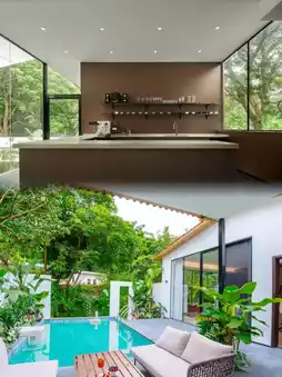The design of Xiaozhai Xiaoyuan (Little House Little Courtyard) can be considered a three-dimensional textbook of Lingnan architecture. The owner invited local emerging designers to deconstruct and reassemble traditional elements under the concept of "Contemporary Lingnan." The central courtyard follows the "four waters returning to the hall" layout, aligning with feng shui principles. During rainy seasons, water drips from the roof tiles into the skywell, creating nature's own symphony.