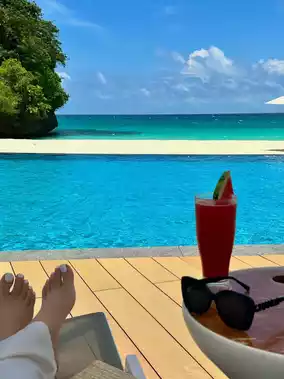 I just want to lie on the beach chair every day, drink fruit juice, look at the sea, and daydream.