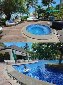 🏨 This time we stayed in two hotels, one of which is the Rui Xiang Resort located at S0. The main reason for choosing this hotel was its swimming pool, which is really big and beautiful! The pool has depths of 1.2m and 0.8m, including a Jacuzzi, and kids can have fun all day long.