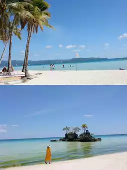 ✅ Island Hopping: A day trip out to sea, you can visit Crystal Island, Magic Island, Puka Beach, and have a snorkeling experience. If you are in a group, it's recommended to charter a boat. Crystal Island is for sightseeing, and Magic Island is for cliff jumping, with an entrance fee of 350₱ per person.