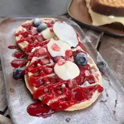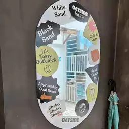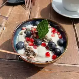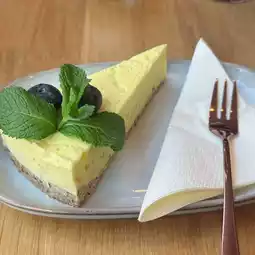 The design is beautiful, creative, and quite unique, though in my opinion, the concrete tables are a bit uncomfortable. Its location is right by the beach, which adds to the charm. The sweetness is just right.