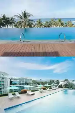 The hotel's infinity pool is one of its biggest highlights. The swimming pool is connected to the sea and the sky, especially at sunset, when the afterglow of the setting sun shines on the water, creating a beautiful picture. In addition, the hotel also offers several connected swimming pools, which are spacious and suitable for families or friends to play together.