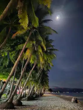 White Beach is characterized by its 4km long soft white sand, so people gather together at sunset and look up at the sky with one heart. The sky was ablaze with orange, pink, and purple, and it was truly breathtaking.