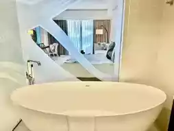The room design is sophisticated, featuring a soothing combination of pure white and light wood tones that instantly make you feel relaxed upon entering. The balcony opens up to breathtaking ocean views, and you can wake up naturally with sunlight streaming in, greeted by blue skies and white waves as soon as you open your eyes. At night, you can enjoy the sea breeze, gaze at the stars, or listen to the sound of the waves. There's no need to plan any activities—staying at the hotel itself is the ultimate therapeutic experience.