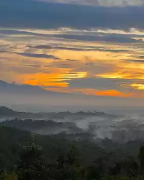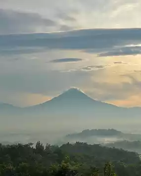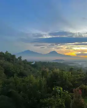 2. Mountain Views: On a clear day, you can see the majestic Mount Merapi in the distance, forming a picturesque scene with the morning mist.